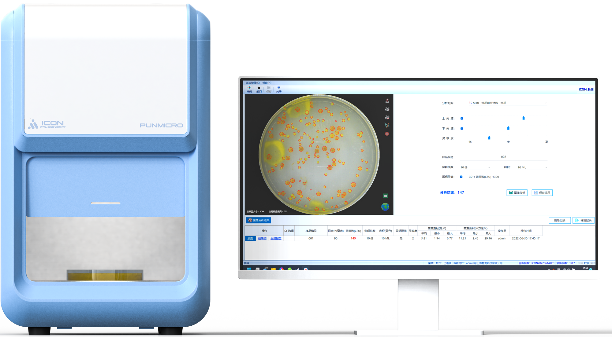 ICON自动菌落计数仪,独创AI智能算法计数,自主学习不易识别菌落形态,完善菌落库,计数识别准确率高达98%,极其简易的操作界面,让用户只需简单点击按键即可完成菌落计数。(杭州、上海、北京等全国各个地区)